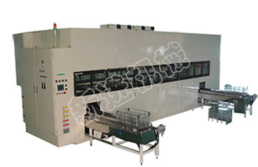 設(shè)備主要是利用多個工位的槽體在常壓、真空條件下對工件進行快速清洗和干燥。設(shè)備由于設(shè)備采用多工位方式清洗和干燥同時進行大大的提高了工件的清洗量。在真空條件下溶劑結(jié)合超聲波、轉(zhuǎn)動/拋動等方式對精密零件(帶盲孔、螺紋孔、細孔)的清洗起到效果,在真空條件下清洗完成后設(shè)備會對工件進行通碳氫蒸汽進行清洗和加熱,完成后抽高真空(10mbar~30mbar)對工件進行突沸干燥。